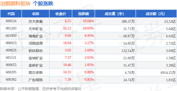 钢铁板块市场表现 - 钢铁板块在盘初交易中出现拉升行情 [1] - 大中矿业股价触及涨停板 [1] - 方大特钢股价上涨超过7% [1] - 鄂尔多斯 新钢股份 柳钢股份等公司股价跟随上涨 [1]