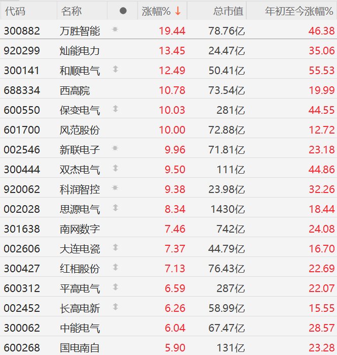 电网设备板块开盘领涨