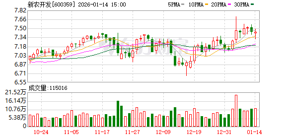 新农开发股价涨5.22%,金元顺安基金旗下1只基金位居十大流通股东,持有192.65万股浮盈赚取73.21万元