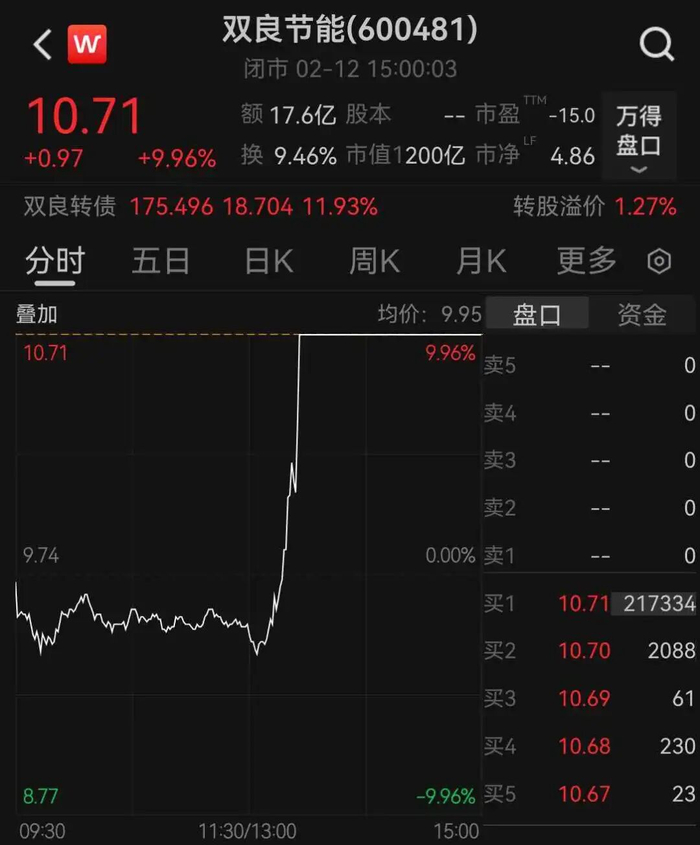 公司监管与信息披露事件 - 上交所对双良节能系统股份有限公司及时任董事会秘书杨力康予以监管警示 [1] - 监管警示原因为公司在微信公众号发布涉及“商业航天”海外订单的市场快讯,相关信息发布不准确、不完整,风险提示不充分 [1] - 公司于2月12日13时25分发布快讯后,股价自13时26分起至收盘均涨停,后在监管督促下于盘后披露说明公告 [1] 公司市场表现 - 2月12日,公司股价收盘于10.71元,单日上涨0.97元,涨幅达9.96% [3] - 当日股票成交额为17.62亿,换手率为9.46%,成交量177.18万 [3] - 公司总市值为200.68亿,所属行业为光伏设备,该行业指数当日微涨0.05% [3] 公司关联证券表现 - 公司可转债“双良转债”当日收盘价为175.496元,单日大幅上涨11.93% [3]