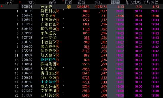 不到1个月金价已涨超20% 贵金属板块掀涨停潮