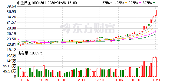 股票频道更多独家策划、专家专栏,免费查阅>> 责任编辑:小讯 2026年1月28日,黄金板块迎来全面爆发,中金黄金(600489)当日强势拉升封死涨停板,涨幅达 10.00%,股价上涨3.43元,最终以37.71元收盘价。交易数据显示,资金交易情绪高涨,当日总成交额 高达67.15亿元,总市值成功突破1828亿元。凭借强劲表现成为当天黄金板块最亮眼的个股之一,市场 关注度持续飙升。 综合各方公开信息及市场动态梳理,本次中金黄金的的核心驱动逻辑可概括为多重因素的共振叠加。其 一,业绩利好持续发酵是核心支撑,年度业绩预增公告明确了全年41.76%到59.48%的净利润增幅,上 年同期相比,同比增加41.76%-59.48%,盈利增长逻辑得到市场广泛认可,吸引价值型资金进场布局。 其二,板块行情联动带动是重要助力,国际现货黄金突破历史新高,沪金主力合约同步走强,黄金概念 (核心股)板块爆发,中金黄金作为黄金概念龙头企业,凭借行业地位与核心竞争力,自然成为市场资 金布局的核心。其三,短期赚钱效应吸引了大量投机资金入场,形成"越涨越买"的正向循环,短期资金 炒作进一步放大了涨幅,同时市场对公司治理改革落地、后续资产注入 ...
