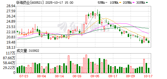 10月15日,华海药业大宗交易成交80万股,成交额1604万元,占当日总成交额的0.94%,成交价20.05 元,较市场收盘价20.69元折价3.09%。 | 区景至五日心 | | | | | | | | | --- | --- | --- | --- | --- | --- | --- | --- | | 交易日期 | 证券简称 | 证券代码 | 成交价(元) 成交金额(万元) 成交量( *) 买入营业部 | | | 卖出营业部 | 是否为专场 | | 025-10-15 | 表演奏作 | 600521 | 20.05 1604 | 80 | 有限公司是多少 | 蛋白菜的精品餐 | ко | ...