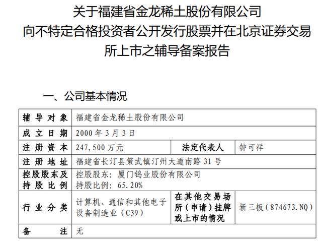 金龙稀土拟北交所上市,董事长等多名董监高还在厦门钨业任职