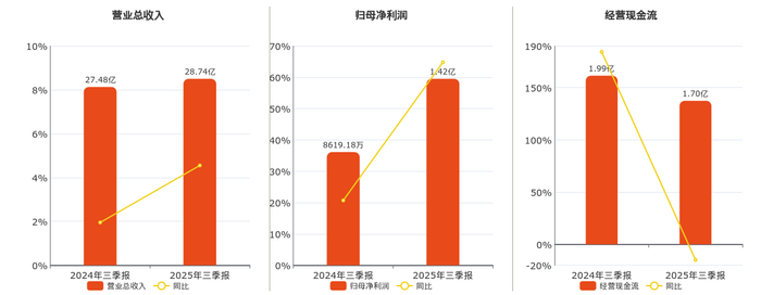 大西洋(600558.SH):2025年三季报净利润为1.42亿元、同比较去年同期上涨64.77%
