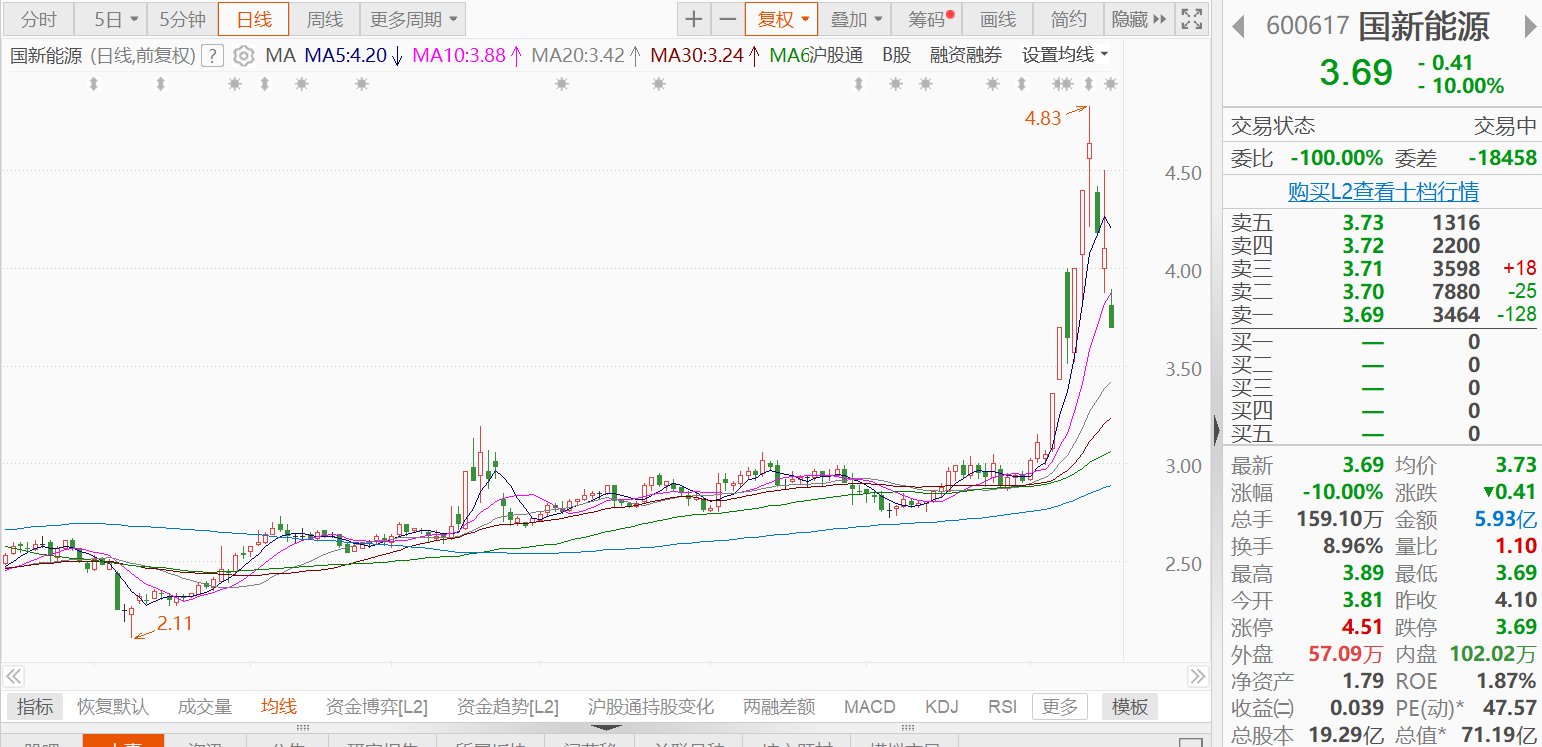 A股异动丨国新能源跌停,股东宏展房产拟减持不超2.07%