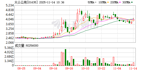 港股异动 | 大众公用(01635)一度涨超9% 摩尔线程启动科创板IPO发行