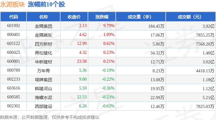 水泥板块1月12日涨0.35%,金隅集团领涨,主力资金净流入3.63亿元