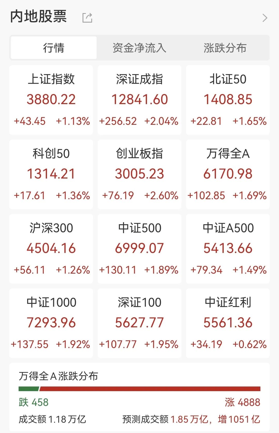 近4900股上涨,A股高开高走,科技龙头全线反弹,光库科技20CM涨停