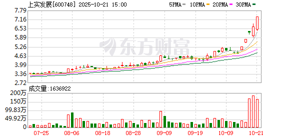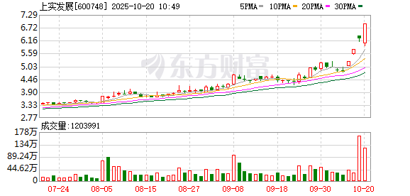 上实发展再度涨停,6个交易日内录得4个涨停,累计涨幅为69.18%,累计换手率为38.41%。截至9:57, 该股今日成交量1.20亿股,成交金额9.24亿元,换手率6.52%。最新A股总市值达148.86亿元。 证券时报·数据宝统计,两融数据来看,该股最新(10月21日)两融余额为2.99亿元,其中,融资余额 2.99亿元,较前一个交易日增加153.82万元,环比增长0.52%,近6日累计增加5735.26万元,环比增长 23.78%。 龙虎榜数据显示,该股因连续三个交易日内,涨幅偏离值累计达20%、日涨幅偏离值达7%、日振幅值 达15%上榜龙虎榜4次,买卖居前营业部中,机构净卖出9158.46万元,沪股通累计净买入4077.65万元, 营业部席位合计净卖出1251.59万元。 据天眼查APP显示,上海实业发展股份有限公司成立于1996年09月19日,注册资本184456.2892万人民 币。(数据宝) 近日该股表现 | 日期 | 当日涨跌幅(%) | 换手率(%) | 主力资金净流入(万元) | | --- | --- | --- | --- | | 2025.10.21 | 10.04 | 8.87 | ...