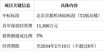 每经AI快讯,12月30日,王府井(600859)(600859.SH)公告称,公司已与北京首都机场商贸有限公司 签署《北京首都国际机场免税项目(02标段)项目合同》,项目位于北京首都国际机场2号航站楼国际出 境隔离区及入境区内,总面积3,566.33平方米。合同运营期自2026年2月11日起至2034年2月10日止,保 底经营费为11,300万元,销售额提成比例在首年为5%,之后每年递增一个点,至第五年封顶。该合同 的签署将进一步拓展公司免税业务的经营网络。 ...