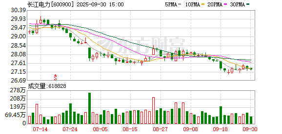 长江电力9月30日现2笔大宗交易 总成交金额2725万元 溢价率为0.00%