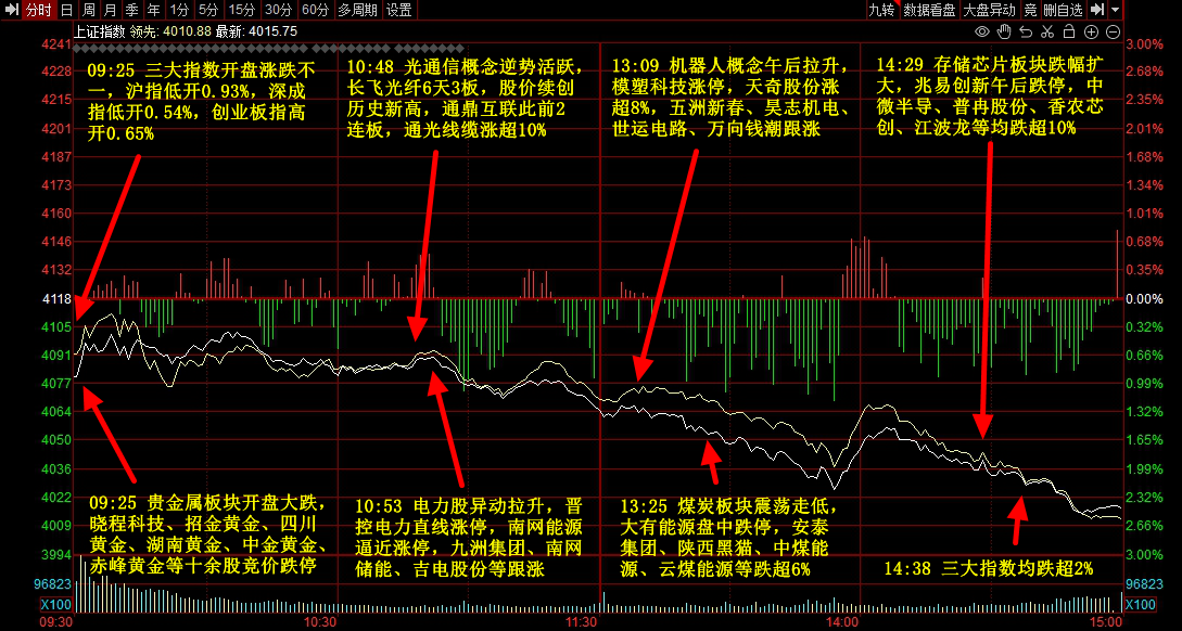市场整体行情 - 2月第一个交易日市场出现强烈亏钱效应,沪指、深成指、创业板指分别收跌2.48%、2.69%、2.46% [4] - 全市场超4600只个股下跌,仅700余只上涨,三市成交量大幅收窄至2.6万亿元 [4] - 题材方面,智能电网板块早盘局部走强,多只个股涨停;白酒板块开盘大涨;光纤、机器人等盘中均有局部表现;而周期股、油气、半导体、存储芯片、农业等板块集体大跌 [3] 有色金属板块 - 有色金属板块集体重挫,迎来大面积跌停,成为市场焦点 [3][5] - 细分板块中,黄金板块下跌10.71%,白银板块下跌9.27%,有色·锑板块下跌9.95%,有色·锡板块下跌9.76%,有色·锌板块下跌8.98% [5] - 板块内领跌股包括晓程科技(-18.96%)、铜陵有色(-10.04%)、恒邦股份(-10.02%)、湖南黄金(-10.00%)、盛屯矿业(-10.02%)、华锡有色(-10.00%)、白银有色(-10.02%)、锌业股份(-10.03%)等 [5][14] - 超过二十只有色金属个股一字跌停,其中大部分为连续第二个跌停板 [14] - 板块大跌主要受外盘期货暴跌影响,此前伦敦银价格在A股收盘后加速下跌,纽约银盘中一度跌超35%,最终收跌25%,黄金及其他有色品种也集体共振大跌 [8][9][10] 人工智能与大模型 - 元宝APP通过启动10亿规模的春节现金红包活动,打响“春节AI大战”,其应用昨日升至苹果商店免费App第一名 [18][21] - 阿里千问APP宣布投入30亿启动春节攻势,全面接入淘宝闪购、大麦、飞猪、盒马等阿里生态业务,以免单形式进行推广 [22] - 受阿里千问消息刺激,阿里概念、算力概念股盘中异动上涨,新华都、三江购物、浙文互联、亚康股份一度涨停,石基信息、数据港、值得买等盘中均有脉冲表现 [22][23] ETF市场 - 今日指数集体大跌,ETF市场跌幅比前几周更为凶狠,上证50ETF、沪深300ETF、中证1000ETF、中证2000ETF午后震荡下跌 [27][28] - 中证500主力合约尾盘一度重挫6.5% [28] - 与之前几周不同,今日市场下跌未见明显的主力砸盘动作,表现为自发性下跌 [27][28] 闻泰科技个股 - 闻泰科技发布2024年年度业绩预告,预计净利润为-135亿元至-90亿元,同比下降376.52%至217.68% [31] - 业绩巨亏主要原因为安世半导体相关纷争导致公司计提了资产减值 [31] - 受业绩“爆雷”影响,闻泰科技今日股价一字跌停 [31]