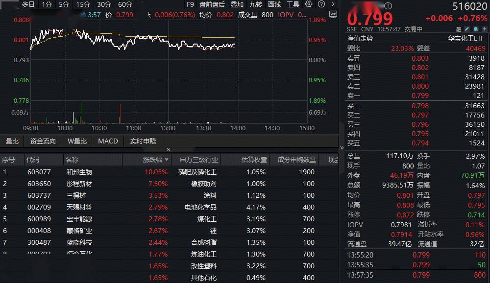 六氟磷酸锂价格或继续上涨?化工板块全天强势,化工ETF(516020)上探1.89%冲击日线三连阳!