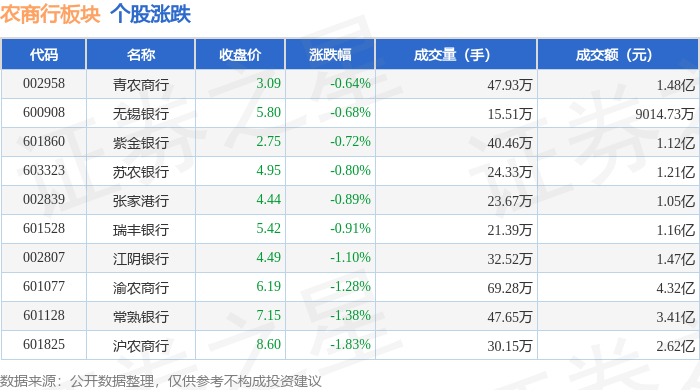 农商行板块1月23日跌0.91%,常熟银行领跌,主力资金净流入977.76万元