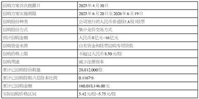 公司股份回购执行情况 - 截至2026年1月31日,公司通过上海证券交易所系统以集中竞价交易方式累计回购股份2881.2万股 [1] - 已回购股份占公司总股本的比例为0.1167% [1] - 回购成交最高价为5.75元/股,成交最低价为5.42元/股 [1] - 本次回购成交总金额为1.60亿元(不含交易费用) [1]
