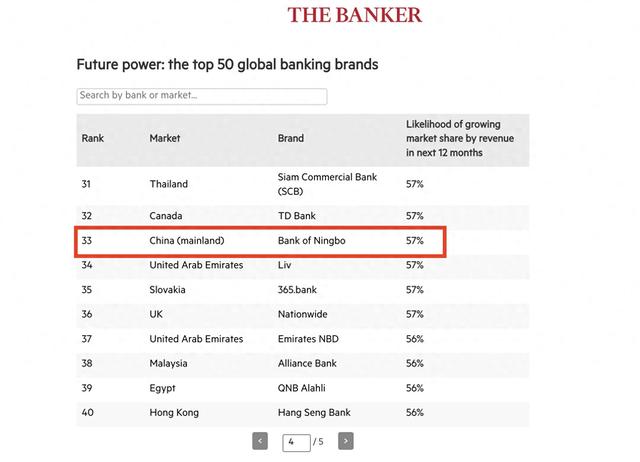 工商银行、宁波银行上榜!英国《银行家》公布全球增速最快50家银行