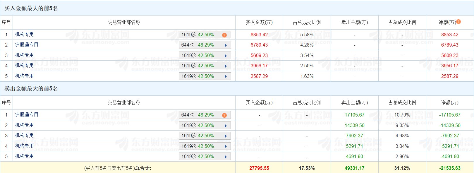 龙虎榜丨三星医疗跌停,沪股通净卖出1.03亿元,机构净卖出1.12亿元