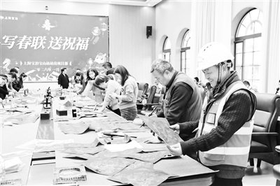近日,上海宝山站站房2标项目工地暖意融融,上海宝冶工会在此开展"写春联、送祝福"主题活动,邀 请书法协会成员、学校及青少年活动中心老师,与职工艺术家、农民工兄弟共同执笔挥毫,让工地满溢 家的温情与节日的喜悦。活动现场,工友们围拢一旁,驻足欣赏,挑选自己心仪的春联。(1月26日 《劳动报》) 建筑职工用辛劳的汗水和智慧为城市建设作出了重要贡献。马年新春佳节临近,一场饱含温度的"写春 联、送祝福"主题活动走进建筑工地,将诚挚的祝福送到坚守岗位的建筑职工手中。这不仅是对传统年 味的传递,更是对一线建设者的致敬,为寒冬里的一线劳动者送去了浓浓的温情与奋进力量。 优秀传统文化是凝聚人心的精神纽带,"写春联、送祝福"活动将传统民俗与对职工的人文关怀相融合。 对建筑职工而言,春联不仅是新年的象征,更是承载着对家人的思念与对平安的期盼。从"筑梦工地添 异彩,扎根申城迎新春"到"平安喜乐常相伴,匠心筑造启新程",寓意吉祥的春联,承载着劳动者对新 年美好的期待。这种接地气、有温度的活动,既丰富了职工的精神文化生活,也让传统民俗在工地焕发 生机,让建筑职工在忙碌工作之余,多了几分喜庆的欢乐和暖意。 笔者以为,一副副春联寄托祝福,一 ...