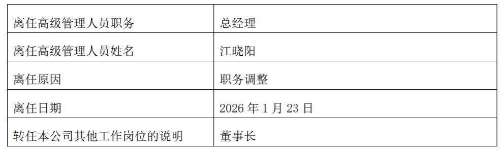 | 离任高级管理人员职务 | 副总经理 | | --- | --- | | 离任高级管理人员姓名 | 朱前 | 瑞财经 王敏 1月26日,华泰证券(上海)资产管理有限公司(以下简称"华泰资管")高级管理人员变更公告,江晓阳正式出任董事长,朱前 升任总经理,刘博文兼任首席风险官。 江晓阳于2001年进入华泰证券股份有限公司,曾在华泰证券股份有限公司广州体育东路证券营业部、北京月坛南街证券营业部、金融创新 部、证券投资部等部门任职。 | 离任高级管理人员职务 | 总经理 | | --- | --- | | 离任高级管理人员姓名 | 江晓阳 | | 离任原因 | 职务调整 | | 离任日期 | 2026年1月23日 | | 转任本公司其他工作岗位的说明 | 董事长 | 2024年1月,江晓阳进入华泰证券(上海)资产管理有限公司,现任华泰证券(上海)资产管理有限公司董事长(代)、董事、总经理。 2025年上半年,华泰资管企业ABS发行数量77单,排名行业第一,发行规模为589.46亿元,排名行业第四。 | 离任原因 | 职务调整 | | --- | --- | | 离任日期 | 2026年1月23日 | | 转任本公 ...