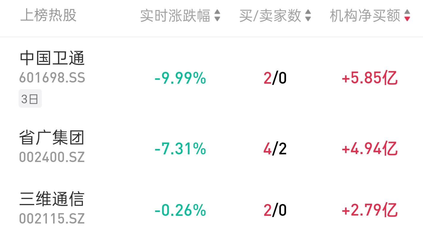 共55只个股出现了机构的身影。 | 航天晨光 | -3.77% | -7486.67 | | --- | --- | --- | | 卓易信息 | -20.00% | -8191.13 | | 肥期出 | -5.77% | -8946.83 | | 金风科技 | -10.01% | -10711.29 | | 至信股份 | 213.44% | -12495.64 | | 红相股份 | -10.98% | -12563.90 | | 国博电子 | -20.00% | -19039.05 | | 视觉中国 | 9.99% | -20611.91 | | 山子高科 | -10.05% | -24177.60 | | 中科星图 | -19.09% | -36829.86 | | 利欧股份 | 4.73% | -43234.84 | 盘后数据显示,1月15日龙虎榜中,共55只个股出现了机构的身影,有24只股票呈现机构净买入,31只 股票呈现机构净卖出。 and | 17 房产 | STREE | | | --- | --- | --- | | | 机构资金参与个股一 | | | 证券简称 | 日涨跌幅 | 机构净买入( ...
