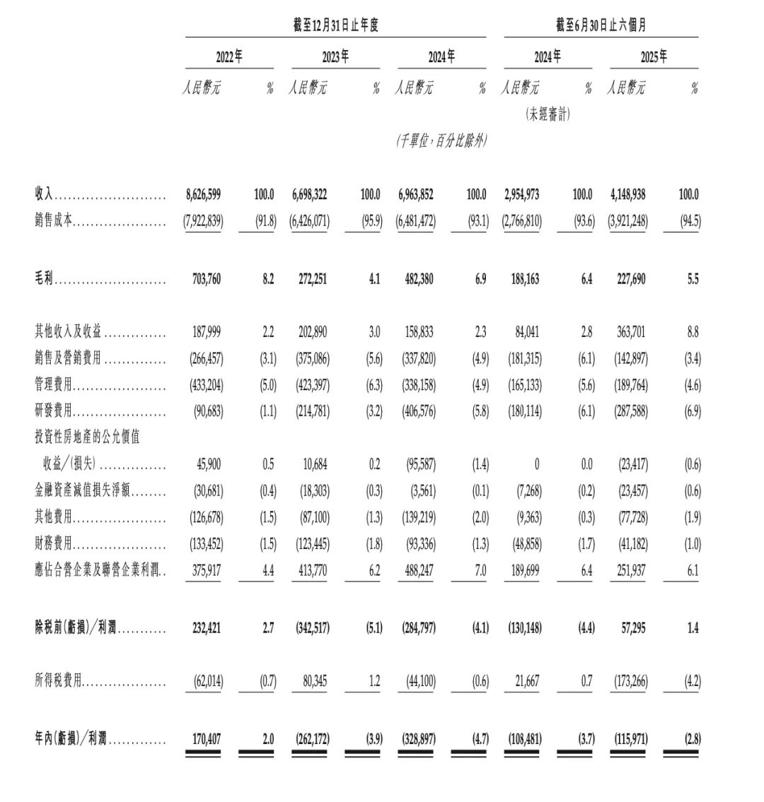 近日,重庆千里科技(601777)股份有限公司(下称"千里科技")正式向港交所主板递交上市申请,中金公司出任独家保荐人。 这一动作距离其完成品牌更名仅8个月,标志着这家曾深陷债务泥潭的传统车企,正式以"AI+Mobility"玩家身份向资本市场发起冲击。 双向依赖吉利 此次递表港交所,尽管招股书用"转型成效显著"描述业绩,2025年上半年营收41.49亿元,但深入核心财务数据可发现,公司盈利质量、转型效率与财务 健康度均有待改善。 | | | | 截至12月31日止年度 | | | | | 截至6月30日止六個月 | | | | --- | --- | --- | --- | --- | --- | --- | --- | --- | --- | --- | | | 2022年 | | 2023年 | | 2024年 | | 2024年 | | 2025年 | | | | 人民爵元 | % | 人民幣元 | | % 人民幣元 | 96 | 人民常元 | | % 人民幣元 | % | | | | | | | | | (未經審計) | | | | | | | | | | (千單位,自分比除外) | | | | | ...
