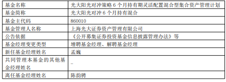 光大阳光对冲6个月持有混合增聘孟巍 陈韵骋离任