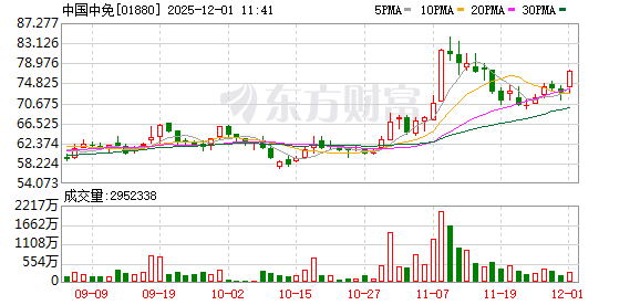 (文章来源:每日经济新闻) 每经AI快讯,中国中免(01880.HK)早盘涨超4%,截至发稿,涨4.81%,报76.3港元,成交额1.48亿港 元。 ...