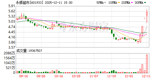 消息面上,永辉超市股价上涨可能与福建省近期出台的惠台政策相关。 相关政策激活了闽台贸易、基建、商业等领域的合作预期,除了永辉超市,东百集团、龙洲股份、九牧王、安记食品等多家福建上市公司相继涨停。 记者注意到,近期永辉超市股价呈"冰火两重天"。 上周五,其股价以3.93元/股收盘,创今年新低,年内跌幅达38%,周一开盘后却迅速拉升至涨停。若以12月11日收盘价计算,永辉超市4个交易日股价累 计涨幅超41%,公司市值也由356.6亿元飙升至503.66亿元。 12月11日,永辉超市(601933)股价以5.55元收盘,较上个交易日上涨6.12%,延续过去三天连续涨停的狂欢。 由于短期暴涨,其于昨晚发布股票交易风险提示公告,表示公司经营活动、经营秩序正常,主营业务未发生重大变化,提醒投资者警惕短期炒作风险。 有意思的是,永辉超市董事长"错过"了这波上涨。 11月中旬,永辉超市发布股东计划减持公告。目前,公司董事长张轩松的一致行动人喜世润合润6号私募证券投资基金于12月4日—12月8日完成了减持动 作,期间累计减持9075万股,对应股价在3.85元—4.32元,"套现"金额超3.77亿元。 | 股东名称 | 上海喜世 ...