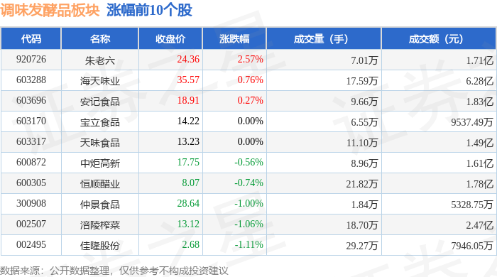 调味发酵品板块2月2日涨0.05%,朱老六领涨,主力资金净流出3605.4万元