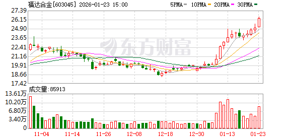 福达合金(603045.SH):预计公司2025年度净利润同比增长119.14%至219.95%
