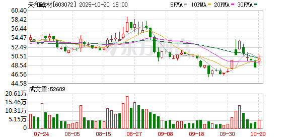 重要内容提示: 公司董事会及董事、高级管理人员保证季度报告内容的真实、准确、完整,不存在虚假记载、误 导性陈述或重大遗漏,并承担个别和连带的法律责任。 公司负责人、主管会计工作负责人及会计机构负责人(会计主管人员)保证季度报告中财务信息 的真实、准确、完整。 第三季度财务报表是否经审计 □是√否 一、主要财务数据 包头天和磁材科技股份有限公司 2025 年第三季度报告 证券代码:603072 证券简称:天和磁材 包头天和磁材科技股份有限公司 2025 年第三季度报告 本公司董事会及全体董事保证本公告内容不存在任何虚假记载、误导性陈述或者 重大遗漏,并对其内容的真实性、准确性和完整性承担法律责任。 (一) 主要会计数据和财务指标 单位:元 币种:人民币 | | | 本报告期比 | | 年初至报告期 | | --- | --- | --- | --- | --- | | 项目 | 本报告期 | 上年同期增 | 年初至报告期末 | 末比上年同期 | | | | 减变动幅度 | | 增减变动幅度 | | | | (%) | | (%) | | 营业收入 | 670,021,876.44 | 0.04 | 1,610, ...