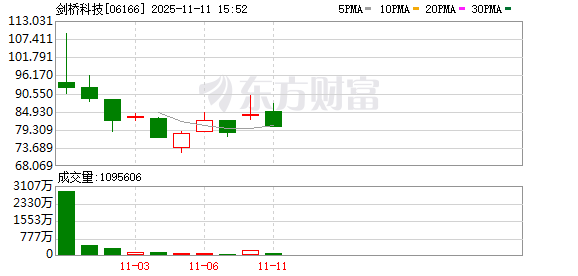 股价表现 - 剑桥科技股价下跌4.7%至80.05港元 [2] - 公司股价前一交易日收涨超过7% [2] - 成交金额为8746.74万港元 [2]