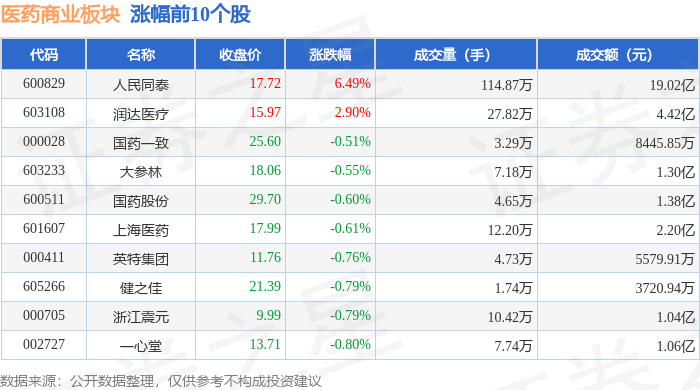 医药商业板块整体市场表现 - 11月17日医药商业板块整体下跌1.62%,表现弱于大盘,当日上证指数下跌0.46%,深证成指下跌0.11% [1] - 板块内个股普遍下跌,领跌个股为鹭燕医药,领涨个股为人民同泰,其股价涨停,涨幅为9.98% [1] 个股价格与交易表现 - 人民同泰收盘价为16.64元,成交量76.80万手,成交额12.76亿元,是板块中唯一涨幅接近10%的个股 [1] - 鹭燕医药(代码002788)跌幅最大,为6.50%,收盘价10.93元,成交量72.83万手 [2] - 漱玉平民跌幅为6.48%,收盘价15.58元,成交量48.03万手,成交额7.70亿元 [2] - 上海医药收盘价18.10元,下跌1.20%,成交额3.03亿元 [1] - 国药一致收盘价25.73元,下跌1.53%,成交额1.33亿元 [1] 板块资金流向 - 当日医药商业板块主力资金净流出8.75亿元,游资资金净流入2.01亿元,散户资金净流入6.74亿元 [2] - 漱玉平民主力资金净流入1785.16万元,主力净占比2.32%,游资净流入1809.32万元,游资净占比2.35% [3] - 南京医药主力资金净流入1729.61万元,主力净占比高达16.82% [3] - 健之佳主力资金净流出488.22万元,主力净占比-8.75%,但散户资金净流入780.61万元,散户净占比13.99% [3] - 英特集团主力资金净流出565.51万元,游资净流出1160.45万元,但散户资金净流入1725.96万元 [3]