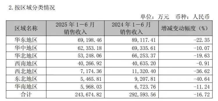 公司核心业绩表现 - 公司营收从2018年的81.44亿元下降至2024年的60.58亿元,六年间减少20.86亿元,期间增速波动剧烈,最高为55.99%,最低为-40.65% [1] - 2025年上半年,公司实现营业收入24.65亿元,同比下降16.19%,实现归母净利润7.44亿元,同比下降27.76%,首次出现营收与净利润双双下滑的局面 [2] - 2025年上半年,公司在华东、华中、华北、西南、西北、东北、华南七个大区的销售收入全线下滑,合计销售收入从2024年同期的29.26亿元下降至24.37亿元,降幅为16.72% [3] - 公司核心产品销量从2018年的85.68万吨萎缩至2024年的56.53万吨 [12] - 2024年,在公司主动减产3.77%的背景下,成品库存反而增加33.56%,截至2025年三季度末,公司存货达4.26亿元,同比大降18.6% [15] 公司历史成功因素 - 公司通过聚焦“健脑益智”的品类定位,成功将“六个核桃”打造为现象级产品,推动了植物蛋白饮料成长为超百亿市场的大品类 [1][5] - 公司通过缩减产品线、主推核桃乳、并命名为“核桃乳”而非“核桃露”来强化产品价值感,同时借助“经常用脑,多喝六个核桃”的广告语进行广泛传播 [6] - 2008年三聚氰胺事件后,动物蛋白饮料需求下降,植物蛋白饮料需求激增,公司借势爆发,通过冠名《最强大脑》等节目进入增长快车道 [6] - 2015年,公司营收突破90亿元,细分市场市占率超80%,2016年正式跨入食品饮料行业百亿俱乐部,销量远超露露和椰树之和 [7] 公司当前面临的挑战 - 产品面临“智商税”质疑,经测算一罐240ml产品所含核桃数约为1.58至1.87个,与品牌名存在差距,且成本结构中易拉罐占比高达52.24%,核桃仁成本仅占23.51%,约0.23元/罐 [9][10] - 公司因涉嫌虚假宣传多次被起诉,导致品牌口碑下滑 [10] - 传统电视广告的边际效应递减,营销叙事仍停留在“补脑”与节日送礼场景,与年轻消费者脱节,导致产品被排除在主流消费场景之外 [11] - 植物蛋白饮料赛道竞争加剧,相关公司过万家,农夫山泉、伊利、蒙牛等巨头相继布局,而公司产品创新不足,仅作“无糖+高钙”或包装更新等表面调整,市场反应平淡 [11] - 2023年末,公司某地经销商卷款跑路,对经营造成负面影响 [15] 公司跨界投资策略 - 为寻找新增长点,公司成立泉泓投资,并转向跨界投资,最初规模为30亿元 [18] - 2025年4月,公司通过泉泓投资向长江存储科技控股有限责任公司增资16亿元,正式跨界进军半导体领域 [3] - 自2021年起,公司先后投资1亿元于人工智能企业重庆紫光华智科技,8亿元入股锂电池企业瑞浦兰钧能源,2.2亿元投资梯媒企业成都新潮传媒 [4][18] - 公司对瑞浦兰钧的8亿元投资,到2024年末账面价值已缩水至5.94亿元,累计损失达2.06亿元 [19] - 2021年至2024年期间,公司投资收益波动显著,依次为3.41亿元、0.02亿元、-1.29亿元及-1.26亿元 [20] - 公司的投资被指为“跟风式”和“随机式”,在硬科技长周期、高风险的特性面前风险陡增 [21]