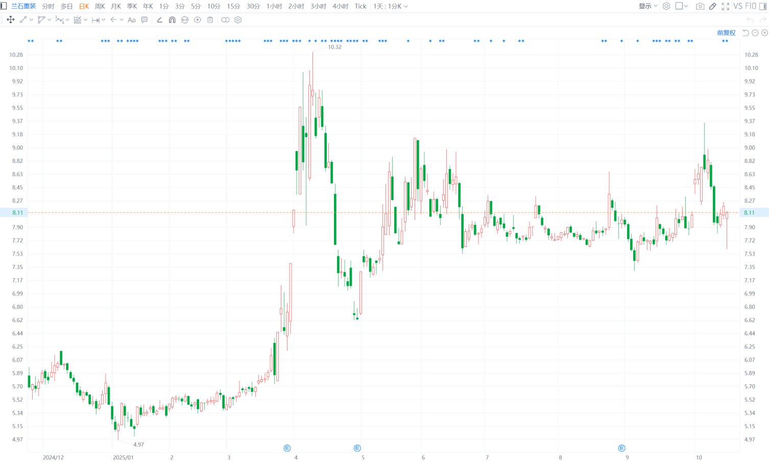 A股异动丨兰石重装盘中跌7% 股价创逾一个月新低