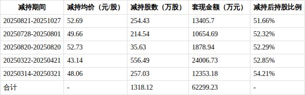股东减持计划 - 控股股东宁波思驰计划自2026年3月3日至2026年6月2日期间,通过集中竞价方式减持不超过4,063,450股(占公司总股本不超过1%),通过大宗交易方式减持不超过8,126,900股(占公司总股本不超过2%),合计减持不超过12,190,350股(占公司总股本不超过3%)[1] - 按公告前一交易日收盘价73.18元计算,此次拟减持股份合计市值约8.92亿元[1] - 本次减持计划不会导致公司控制权发生变更[2] 股东持股背景 - 截至公告日,控股股东宁波思驰持有公司股份209,914,539股,占公司总股本51.66%,该部分股份为IPO前取得[1] - 宁波思驰与张镇潮为一致行动人,张镇潮为宁波思驰实际控制人,两者合计持有公司股份302,214,539股,占公司总股本74.37%[1] 历史减持情况 - 宁波思驰最初持股2.23亿股,占总股本54.85%[2] - 自2025年3月14日起,宁波思驰已开始减持公司股份,迄今为止累计减持1318.12万股,累计套现约6.23亿元[2] - 历史减持数据显示,2025年3月14日至2025年10月27日期间,共发生5次主要减持,减持均价区间为43.14元/股至52.73元/股,单次套现金额在1878.94万元至24006.73万元之间[3]