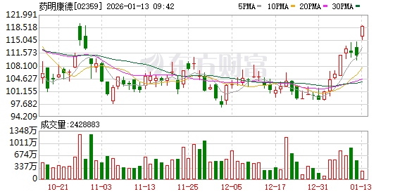 每经AI快讯,药明康德(603259)(02359.HK)盈喜后高开逾4%,截至发稿涨4.69%,报116港元,成交 额3112.34万港元。 ...