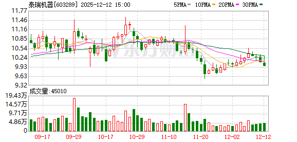 每经AI快讯,泰瑞机器(SH 603289,收盘价:9.85元)12月19日晚间发布公告称,2025年12月19日, 公司收到实际控制人郑建国出具的《关于股份减持计划时间届满暨减持结果的告知函》,本次减持时间 区间已届满。郑建国在减持期间内通过集中竞价和大宗交易方式累计减持公司股份约573万股,占公司 总股本的1.95%。本次减持计划实施完毕。 2024年1至12月份,泰瑞机器的营业收入构成为:专用设备制造业占比99.65%,其他业务占比0.35%。 截至发稿,泰瑞机器市值为29亿元。 每经头条(nbdtoutiao)——海南封关首日直击:为中国探路,全球最大自贸港如何重塑开放边界? (记者 贾运可) ...