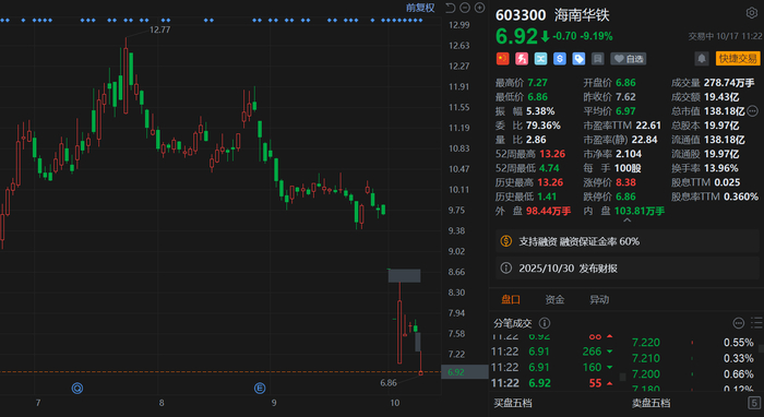 海南华铁(603300)