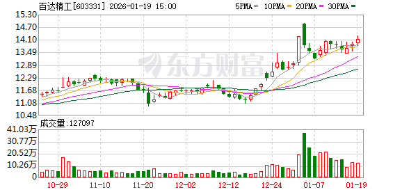 公司股价与交易表现 - 2025年1月14日盘中,公司股价下跌2.01%,报13.62元/股,总市值27.54亿元,当日成交额1.42亿元,换手率5.05% [1] - 当日资金流向显示主力资金净流入6.91万元,特大单买卖占比分别为5.15%和8.90%,大单买卖占比分别为28.84%和25.05% [1] - 公司股价年初至今下跌4.42%,但近期表现强劲,近5个交易日上涨3.18%,近20日上涨18.64%,近60日上涨21.61% [1] 公司基本概况与业务构成 - 公司全称为浙江百达精工股份有限公司,成立于2000年8月7日,于2017年7月5日上市,总部位于浙江省台州市 [1] - 公司主营业务为压缩机零部件和汽车零部件的开发、生产与销售 [1] - 主营业务收入构成中,压缩机零部件占比55.37%,汽车零部件占比41.44%,其他(补充)占比2.23%,其他业务占比0.96% [1] 公司行业与概念归属 - 公司所属申万行业为机械设备-通用设备-其他通用设备 [1] - 公司涉及的概念板块包括汽车轻量化、汽车零部件、家用电器、新能源车、人形机器人等 [1] 公司股东与股权结构 - 截至2025年9月30日,公司股东户数为1.35万户,较上一期减少21.30% [2] - 同期,人均流通股为14937股,较上一期增加27.06% [2] 公司近期经营业绩 - 2025年1月至9月,公司实现营业收入11.05亿元,同比微降0.59% [2] - 同期,公司实现归母净利润5974.63万元,同比大幅增长178.85% [2] 公司分红历史 - 自A股上市以来,公司累计派发现金红利2.23亿元 [3] - 最近三年,公司累计派发现金红利5661.58万元 [3]