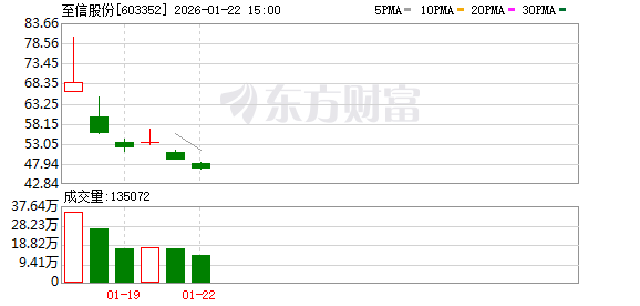 公司股价表现 - 至信股份于2026年1月21日收盘报49元,单日跌幅达8.29% [1] - 该股在当日盘中最低触及48.93元,创下自上市以来的新低 [1] - 2026年1月21日为至信股份在上交所主板上市后的第五个交易日 [1] 首次公开发行(IPO)概况 - 至信股份于2026年1月15日在上海证券交易所主板上市 [1] - 本次IPO发行股票数量为56,666,667股,占发行后总股本的25.00% [1] - 发行价格为每股21.88元,发行股份全部为新股,未涉及老股转让 [1] 募集资金情况 - 本次发行募集资金总额为123,986.67万元 [1] - 扣除发行费用后,募集资金净额为112,655.21万元 [1] - 实际募集资金净额比原计划少20,293.64万元 [1] - 根据公司招股书,原计划募集资金132,948.85万元,拟用于冲焊生产线扩产能及技术改造项目以及补充流动资金项目 [1] 发行相关中介机构与费用 - 本次发行的保荐机构为申万宏源证券承销保荐有限责任公司,保荐代表人为梁潇、黄学圣 [1] - 联席主承销商为西南证券股份有限公司 [1] - 本次公开发行的发行费用总额为11,331.46万元(不含增值税) [1] - 其中,承销及保荐费用为8,431.09万元 [1]