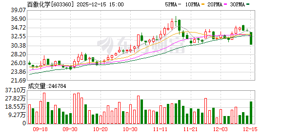百傲化学跌停,沪股通龙虎榜上净卖出1293.94万元