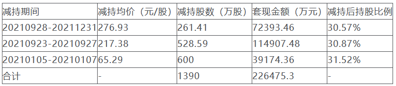 中国经济网北京10月9日讯豪威集团(603501)(603501.SH)近日披露《控股股东减持股份计划公告》。 根据公告,控股股东虞仁荣计划自公告披露之日起15个交易日后的3个月内通过大宗交易方式减持公司股份不超过 24,000,000股,减持比例合计不超过公司股份总数的1.99%。 按上一交易日(9月30日)公司收盘价151.17元计算,虞仁荣拟减持套现合计约3,628,080,000元。 虞仁荣为公司控股股东、实际控制人。 本次减持计划由控股股东自身资金需求原因自主决定。本次减持计划不会对公司治理结构/持续性经营等产生影 响。减持计划实施不会导致上市公司控制权发生变更。 据新浪财经信息,虞仁荣最初持股2.79亿股,占总股本的67.17%。虞仁荣从2021年1月5日起,第一次减持豪威集团 股份,迄今为止,累计减持公司股票1390万股,累计套现约22.65亿元。 | 咸持期间 | | 减持均价(元/股)减持股数(万股) 套现金额(万元) 减持后持股比例 | | | --- | --- | --- | --- | | 20210928-20211231276.93 | 261.41 | 72393.46 | 3 ...