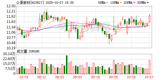 众源新材(603527.SH):第三季度净利润同比下降81.68%