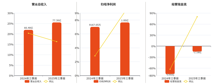 财务表现概述 - 公司前三季度实现营业收入77.3亿元,同比增长16.29% [1] - 公司前三季度实现归属于母公司股东的净利润1亿元,同比增长9.19% [1] - 公司前三季度扣除非经常性损益的净利润为亏损2265万元 [1] - 公司前三季度基本每股收益为0.32元 [1]