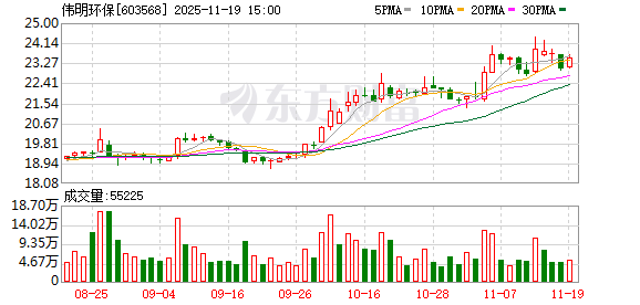 截至发稿,伟明环保市值为401亿元。 每经头条(nbdtoutiao)——爱泼斯坦案文件解密倒计时,美国会"秒过"法案直通特朗普,引爆两党"极 限撕扯" 每经AI快讯,伟明环保(SH 603568,收盘价:23.52元)11月19日晚间发布公告称,公司第七届第二十 二次董事会会议于2025年11月19日以通讯方式召开。会议审议了《关于选举代表公司执行公司事务董事 的议案》等文件。 2024年1至12月份,伟明环保的营业收入构成为:工业占比99.42%,其他业务占比0.58%。 (记者 王晓波) ...