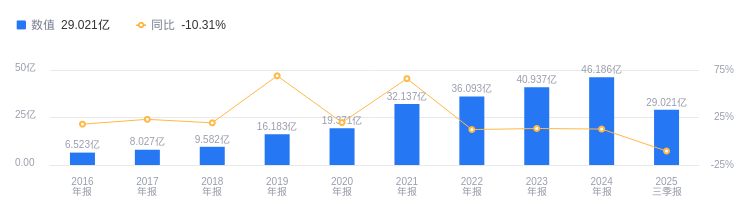 中国东方集团(00581)发布公告,公司附属公司青岛汇金通(603577)电力设备股份有限公司(汇金通)于 截至2025年9月30日止九个月实现营业总收入29.02亿元(人民币,下同),同比下降10.3%;归属于母公司 股东的净利润8227.55万元,同比下降21.6%;基本每股收益0.2426元。 ...
