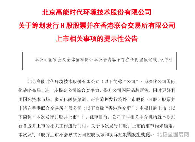 公司战略规划 - 公司正在筹划发行H股并在香港联合交易所主板挂牌上市 以深化国际化战略布局 提高综合竞争力 提升国际品牌形象 并利用国际资本市场多元化融资渠道 [1] - 本次H股发行上市的具体细节尚未确定 相关工作正与中介机构商讨 且不会导致公司控股股东和实际控制人发生变化 [1] - H股发行上市方案尚需提交公司董事会和股东会审议 并需取得中国证监会 香港联交所等监管机构的备案 批准或核准 最终能否实施具有重大不确定性 [1] 公司业务与财务表现 - 公司是国内最早专业从事固废污染防治技术研究 成果转化和提供系统解决方案的国家高新技术企业 [3] - 公司主营业务分为三大板块:固废危废资源化利用 环保运营服务及环保工程 [3] - 公司2025年前三季度营业收入为101.6亿元 同比减少11.28% [3] - 公司2025年前三季度归属于上市公司股东的净利润为6.46亿元 同比增长15.18% [3] - 公司2025年前三季度归属于上市公司股东的扣除非经常性损益的净利润为6亿元 同比增长29.03% [3] - 公司2025年前三季度基本每股收益为0.424元 [3]