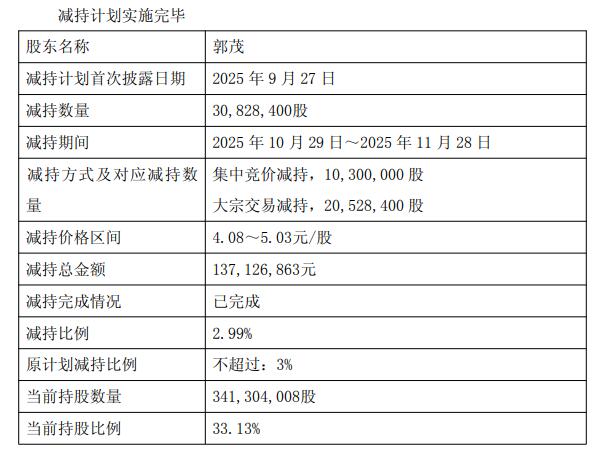 交易核心信息 - 公司控股股东郭茂向中融华信国际生物科技(北京)有限责任公司协议转让6218.72万股无限售条件流通股,占公司总股本(10.30亿股)的6.04% [1] - 股份转让价格为5.53元/股,总价款约为3.44亿元,付款采用分期模式并设立共管账户监管 [1] - 交易完成后,中融华信将成为持有公司5%以上股份的股东 [1] 交易双方股权变动 - 转让前,控股股东郭茂持有公司3.41亿股,持股比例为33.13% [2] - 转让完成后,郭茂持股数量降至2.79亿股,持股比例稀释至27.09%,但仍保持控股股东及实际控制人地位 [2] - 受让方中融华信由张晓伟100%持股,注册资本5000万元,实缴资本1850.1万元 [2] 受让方背景与承诺 - 中融华信主营业务包括生物工程技术推广、技术服务、软件开发及日用品零售等 [2] - 截至2024年12月31日,中融华信资产总额与净资产均为485.94万元;截至2025年9月30日,资产总额增至1809.04万元,净资产1808.90万元,负债总额仅0.14万元 [2] - 中融华信承诺拥有足够资金支付交易对价,并承诺自股份过户之日起十二个月内不减持 [2] - 公开信息显示,中融华信曾投资山东岱航能源科技有限公司(已注销)及邯郸融信房地产开发有限公司(已注销) [3] 交易目的与公司近期表现 - 转让目的系控股股东为优化公司股权结构,引入认可公司长期价值的新投资者,同时满足自身资金需求 [2] - 受让方中融华信基于对公司长期投资价值的认可而受让股份 [2] - 公司股价近期明显波动,最近两个交易日连续涨停 [1] - 12月1日至5日当周,公司股价从5.06元上涨至5.23元,周涨幅3.36% [3] - 截至12月9日收盘,公司股价报6.33元,总市值达65.21亿元 [3]